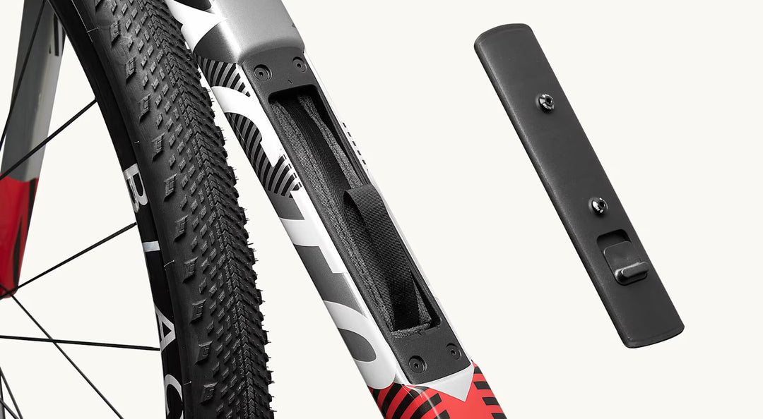 Pouvant accueillir des chambres à air, des cartouches de CO2 et un kit de rustines, le rangement intégré au cadre ALUTO élimine le besoin de sacoche de selle ou de guidon, ce qui permet de réduire considérablement la traînée. L'autonomie à vélo ne doit plus se faire au détriment de l'aérodynamisme ni de l'élégance.