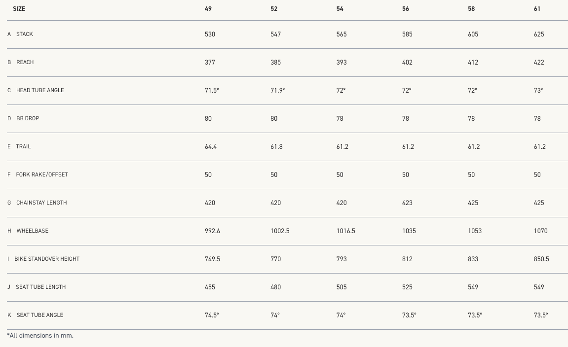 Le tube de direction utilise des roulements supérieurs de 1,5", permettant un routage interne avec le tube de direction rond. L'aérodynamisme est renforcé par une forme de sablier minimaliste mais fonctionnelle.