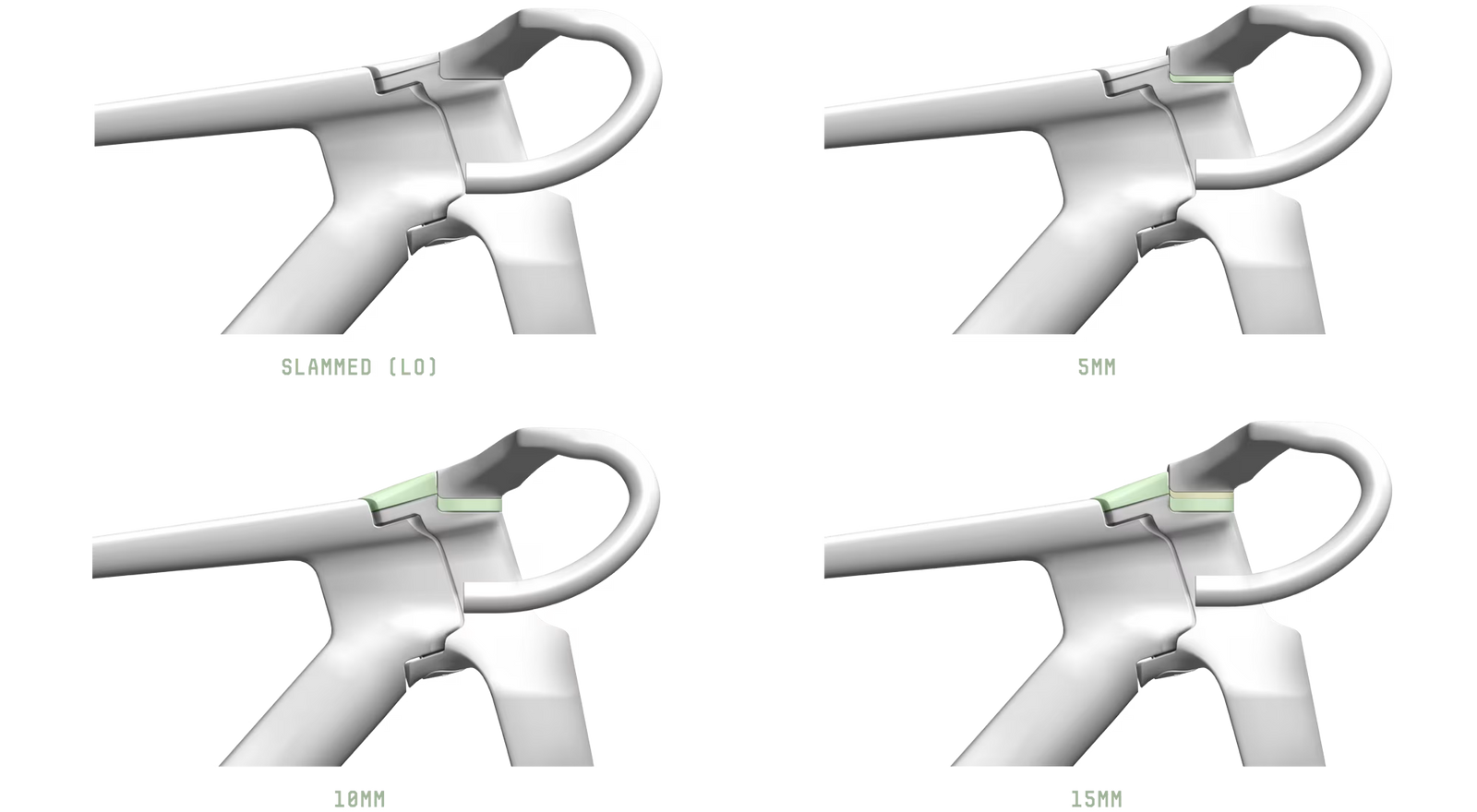 Il est possible d'ajouter jusqu'à 15 mm d'entretoises par vélo. Associées au choix d'un guidon haut ou bas, ces entretoises offrent aux cyclistes une plage de réglage de la hauteur du sélecteur de vitesse de 35 mm.