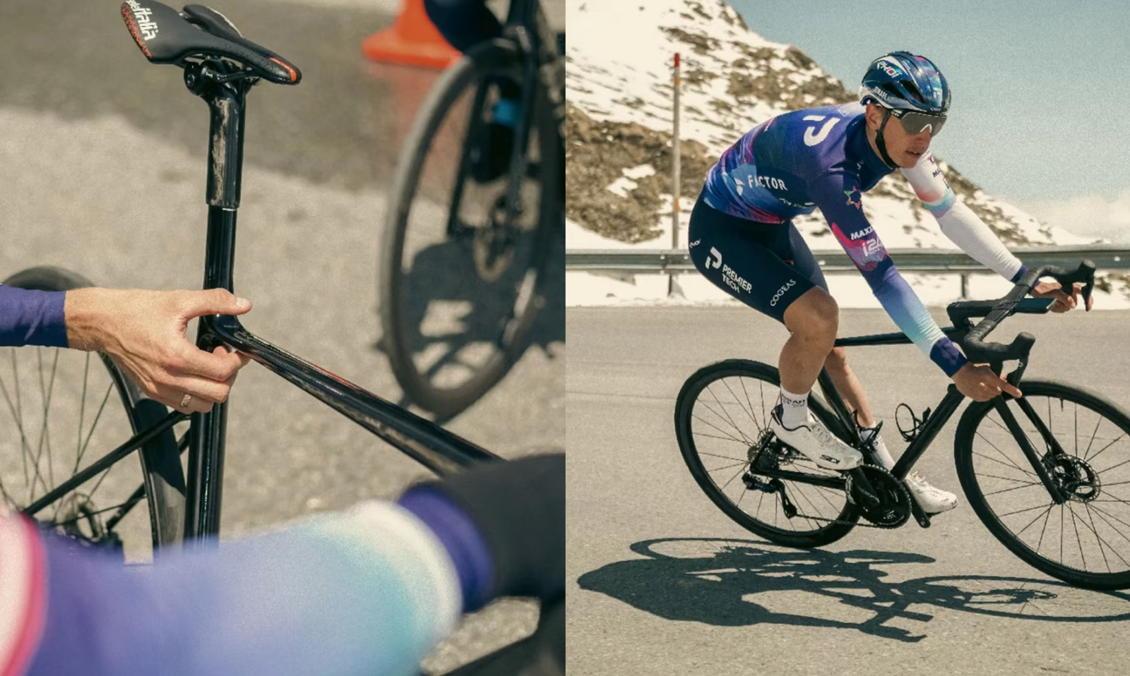 Nous sommes sur le parking de l'Hôtel Pic Maia au sommet du Port d'Envalira à 2400 mètres dans les Pyrénées andorranes. Nous sommes à la mi-mai. Les prochaines minutes capturent presque tout ce que vous devez savoir sur la relation entre l'équipe Israel Premier Tech et Factor Bikes, et comment ce partenariat a façonné le nouveau modèle O2 VAM en un vélo parfait pour les étapes de montagne.